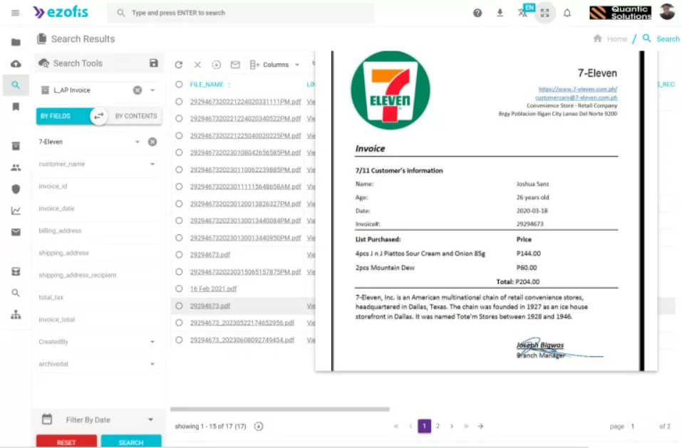 EZOFIS automatically organises documents based on their metadata. This makes it easier to drill down to find the correct document.