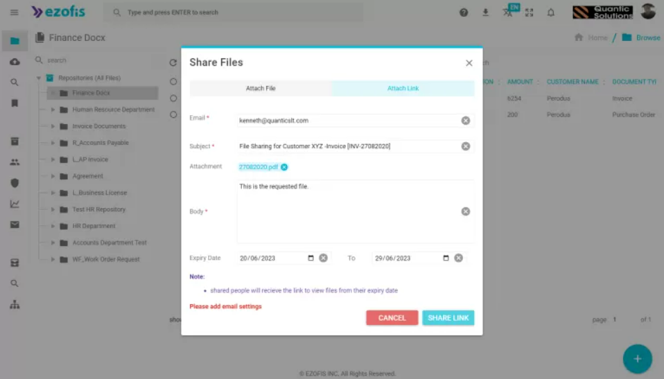 File sharing with EZOFIS is quick and simple. By just sharing a link, you can send anything – from document and images – with anyone, even if they don’t have a EZOFIS account. Share links and files from anywhere, using your phone, tablet or computer.